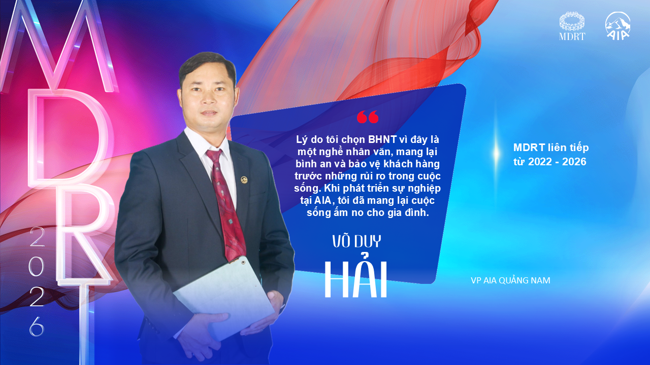 Lý do tôi chọn BHNT vì đây là một nghề nhân văn, mang lại bình an và bảo vệ khách hàng trước những rủi ro trong cuộc sống. Khi phát triển sự nghiệp tại AIA, tôi đã mang lại cuộc sống ấm no cho gia đình.
