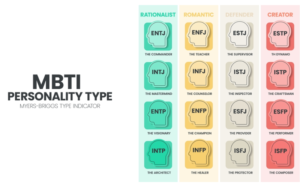 Trắc nghiệm tính cách MBTI (Myers-Briggs Type Indicator) là công cụ giúp phân loại tính cách dựa trên 4 cặp phạm trù: Hướng ngoại – Hướng nội (E-I), Cảm giác – Trực giác (S-N), Tư duy – Tình cảm (T-F), và Đánh giá – Linh hoạt (J-P).